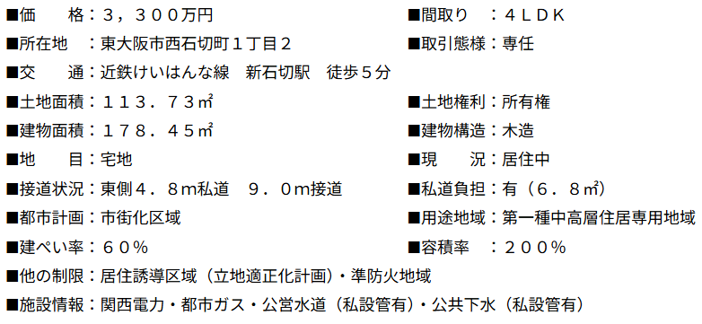 中古戸建 西石切町1丁目