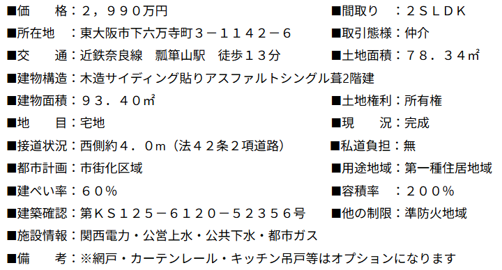 新築戸建 東大阪 下六万寺町3丁目