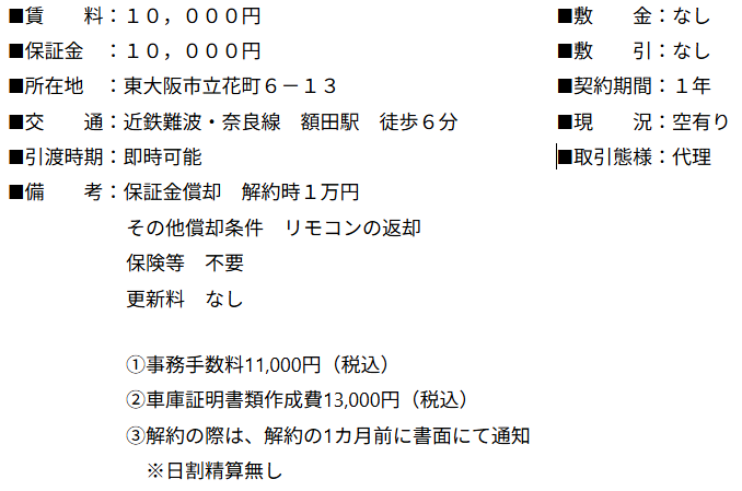 貸駐車場 田中雅モータープール(NO20・NO21)